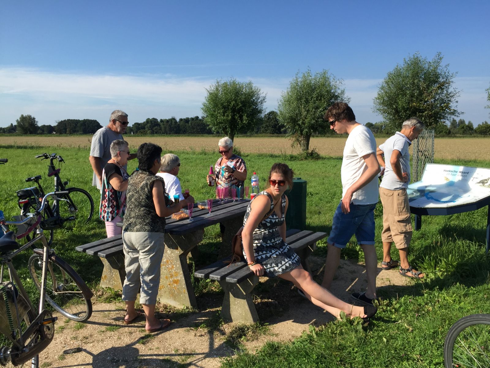 Lisa heeft de door ons uitgezette wandelroutes allemaal getest en de beste van ca. 10km uitgekozen.De fietsers namen de andere route van 22 km en een heerlijke tussenstop bij "koffiepunt 40" in Strijen. Helaas was er voor de wandelaars geen rustpunt te vinden op de te lopen route en hebben in de berm de versnaperingen uit de daar gestalde auto genuttigd.