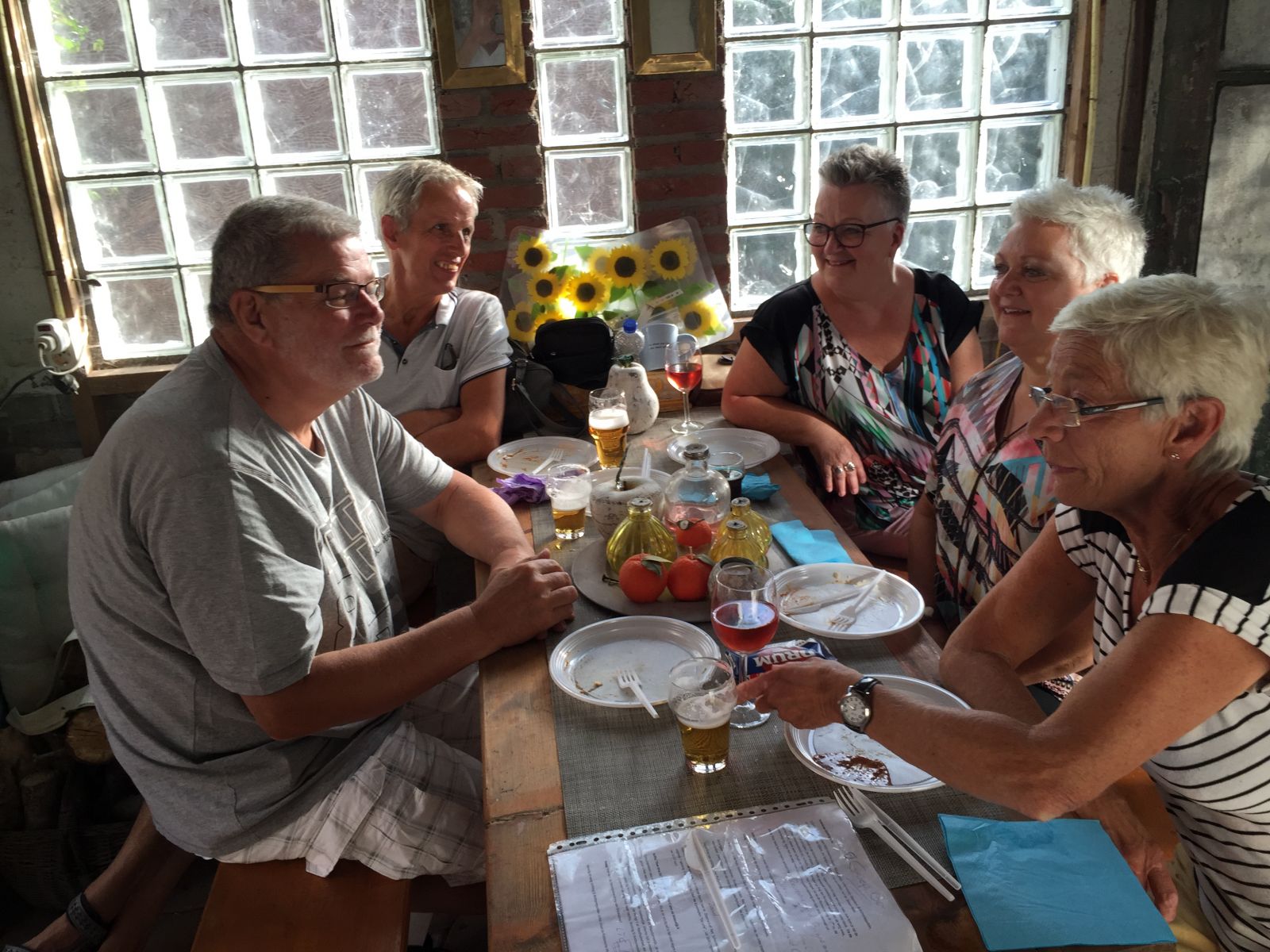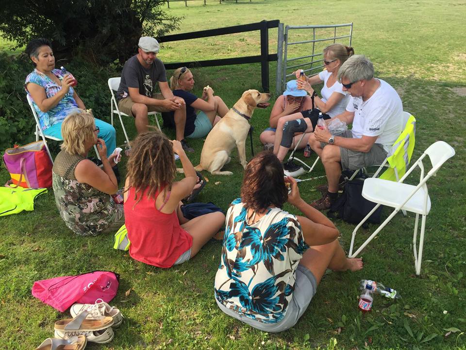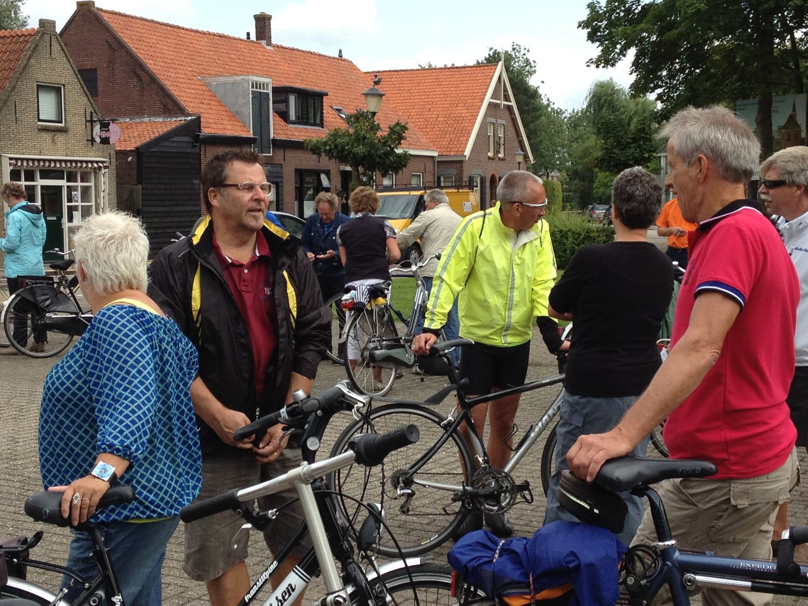 de andere deelnemers te ontmoeten. Daar stonden o.a. de sportieve mannen voor de 70 km, vrienden, vrienden van vrienden, bekenden en dorpsgenoten.,