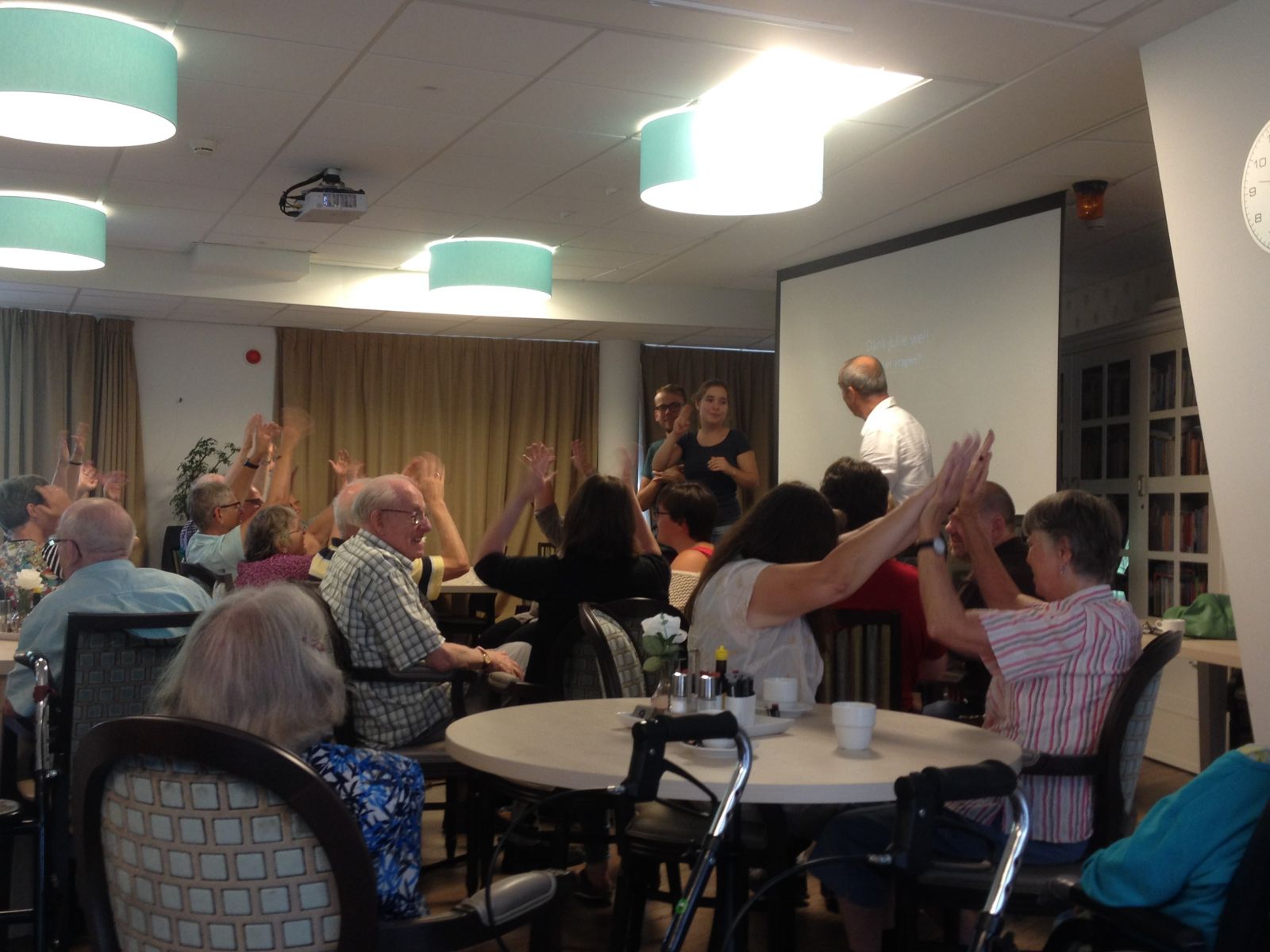 De band was geweldig en er werd gezongen en gedanst. Ook de dove deelnemers konden dansen op de trillingen van de muziek.