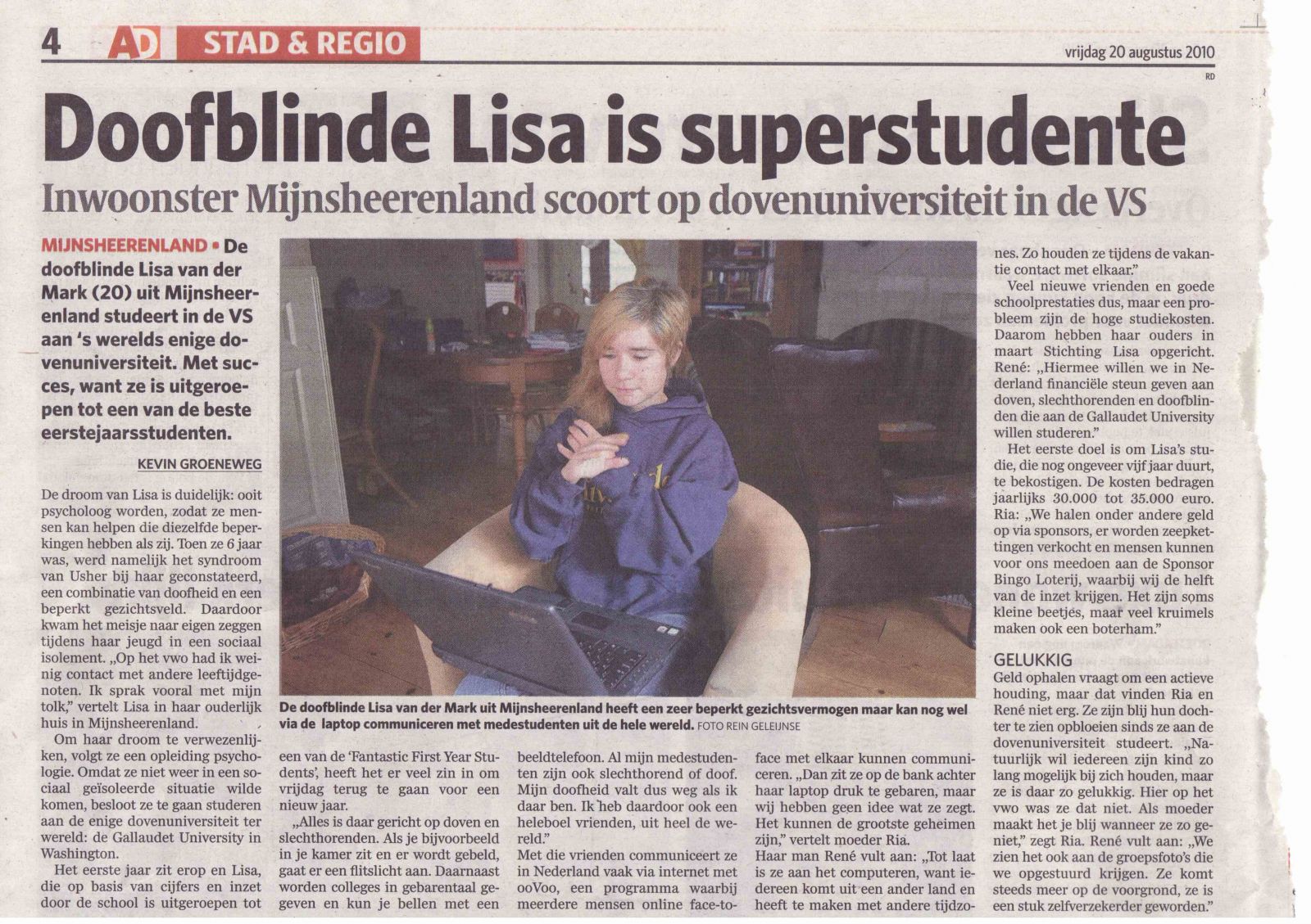Lisa in het AD op de dag dat ze zelf weer vertrekt voor een nieuw studiejaar.