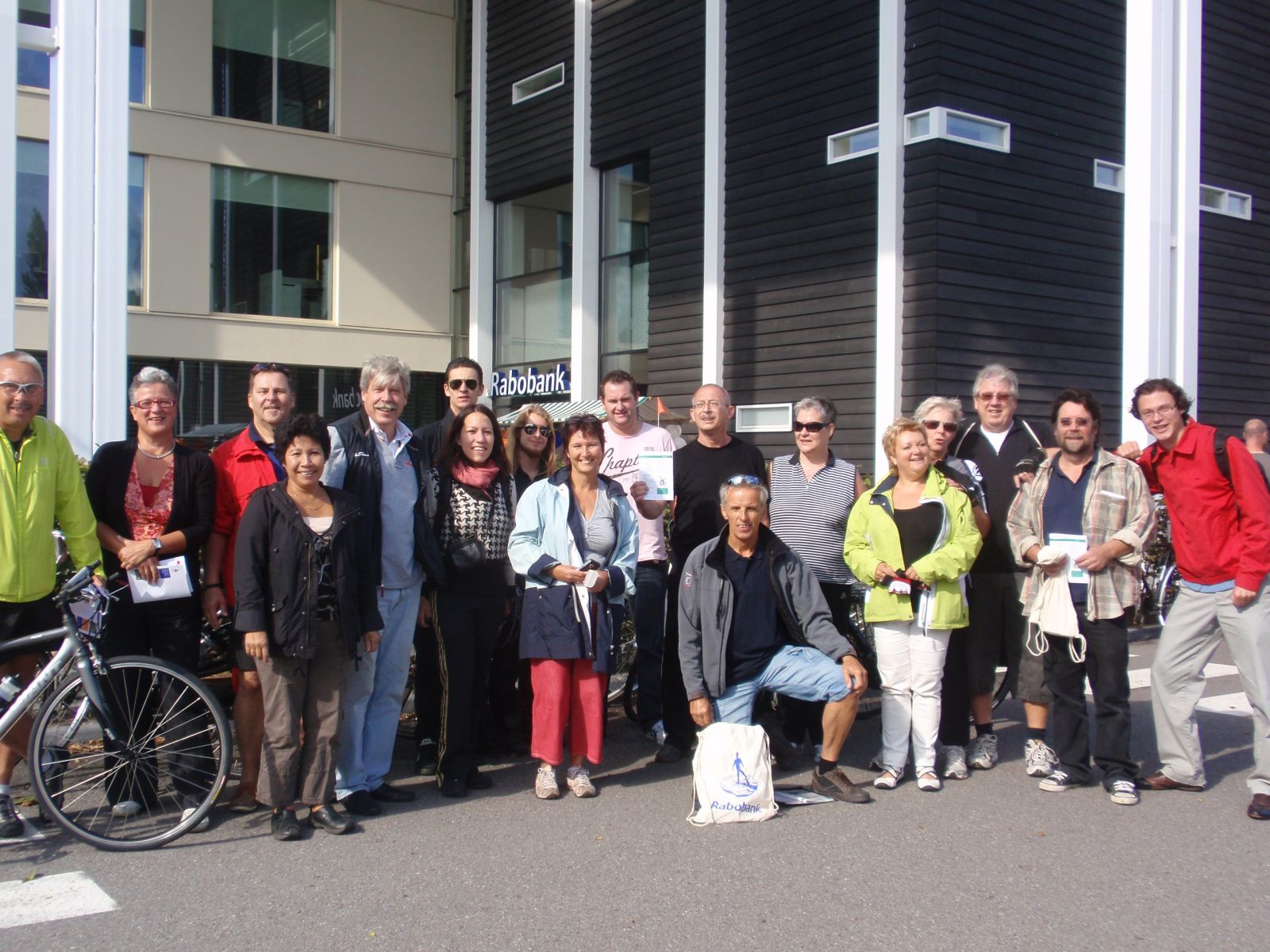 Wij, de recreatiefietsers (behalve Jaap natuurlijk) vertrokken uit Mijnsheerenland om bij de RaboBank in Henenoord