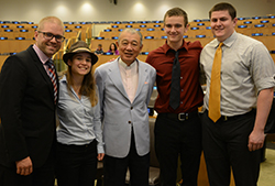 Photo by Andrew Greenman: Gallaudet students traveled to New York City to attend a side event of the 8th Annual Conference of States Parties to the Constitution on the Rights of Persons with Disabilities at the United Nations on June 8. The event, Participation of Persons with Disabilities in the UN System and Broader Global Governance Processes, was organized by The Nippon Foundation. Yohei Sasakawa, the foundation’s chairperson, served as a panelist during the event. From left, graduate student Keith Doane, senior Lisa van der Mark, Sasakawa, sophomore Jason Antal, and senior Sean Maiwald.